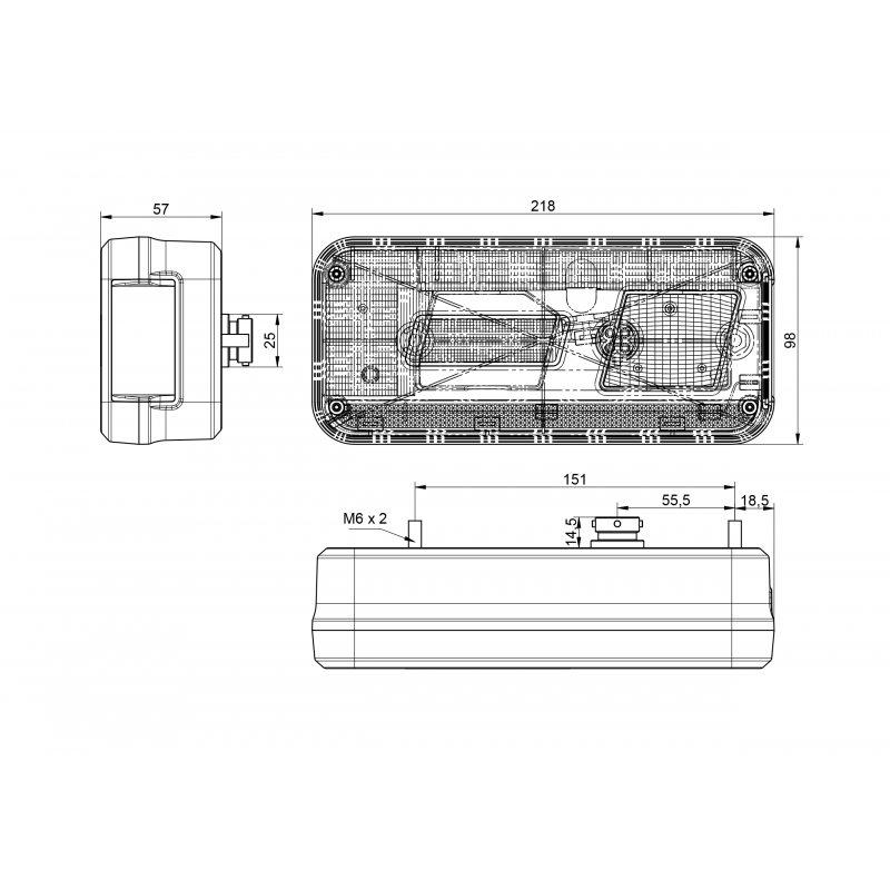 Ліхтар правий, сигнал гальмування, габаритний вогонь, покажчик повороту, освітлення реєстраційного знаку, протитуманний вогонь, світлоповертач, байонет. Лампи розжарювання у комплекті