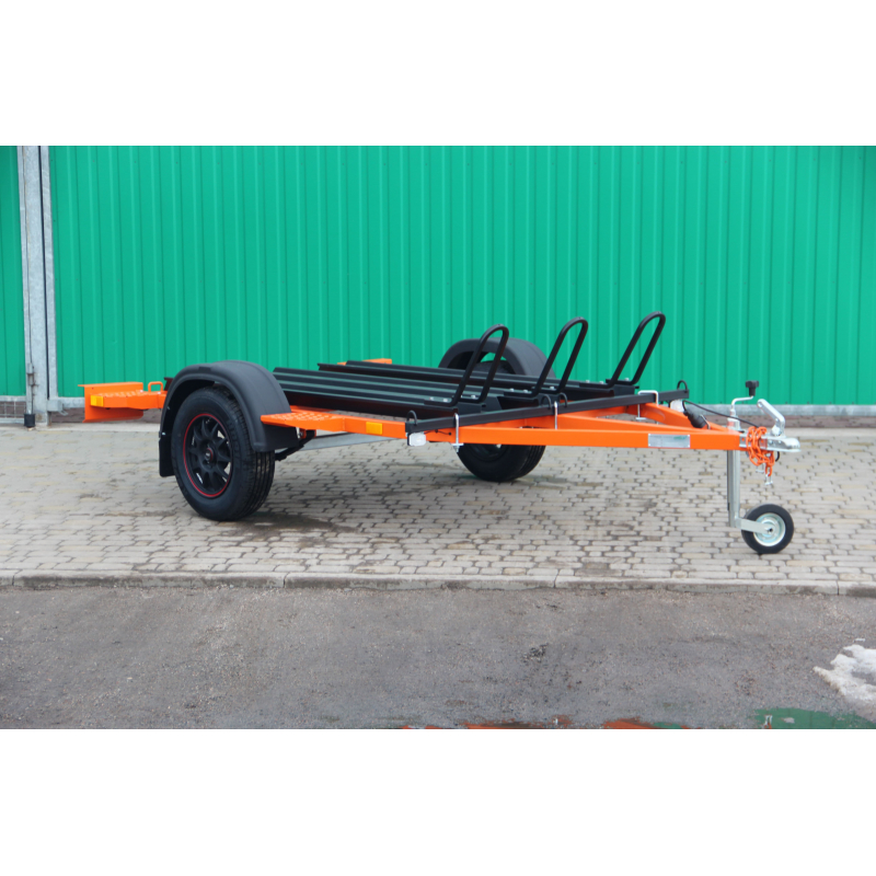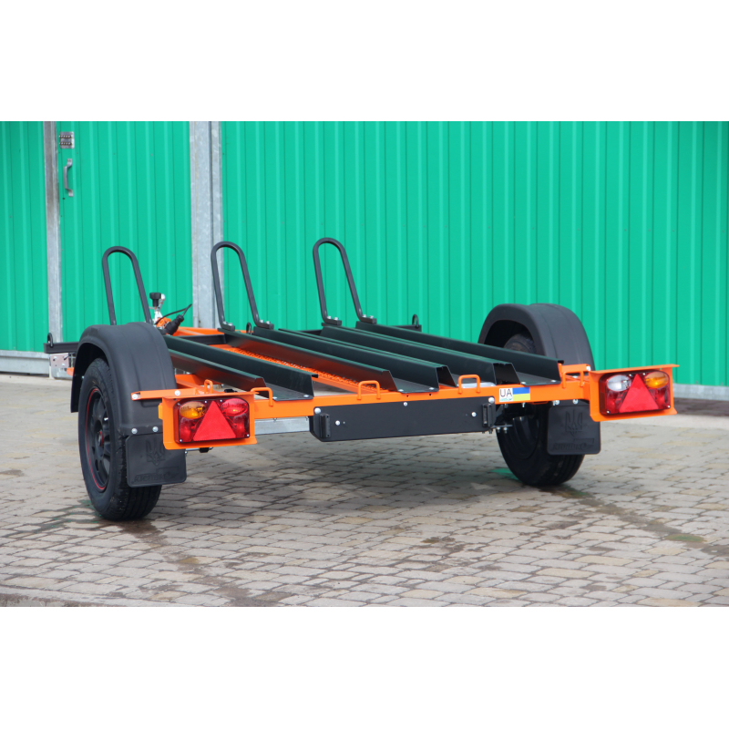 Причіп для комфортного перевезення двох мотоциклів. Мотоцикли зручно заганяти на причіп по заїзному трапу, а спеціальні фіксатори, встановлені на причепі, надійно закріплять ваші мотоцикли.